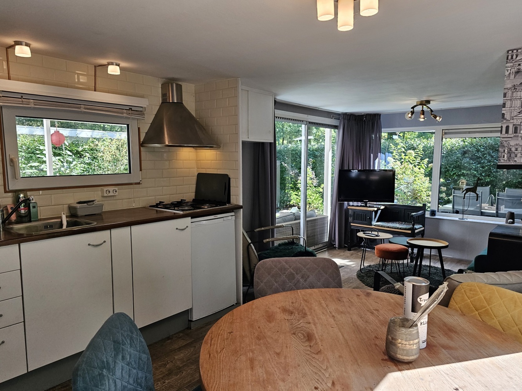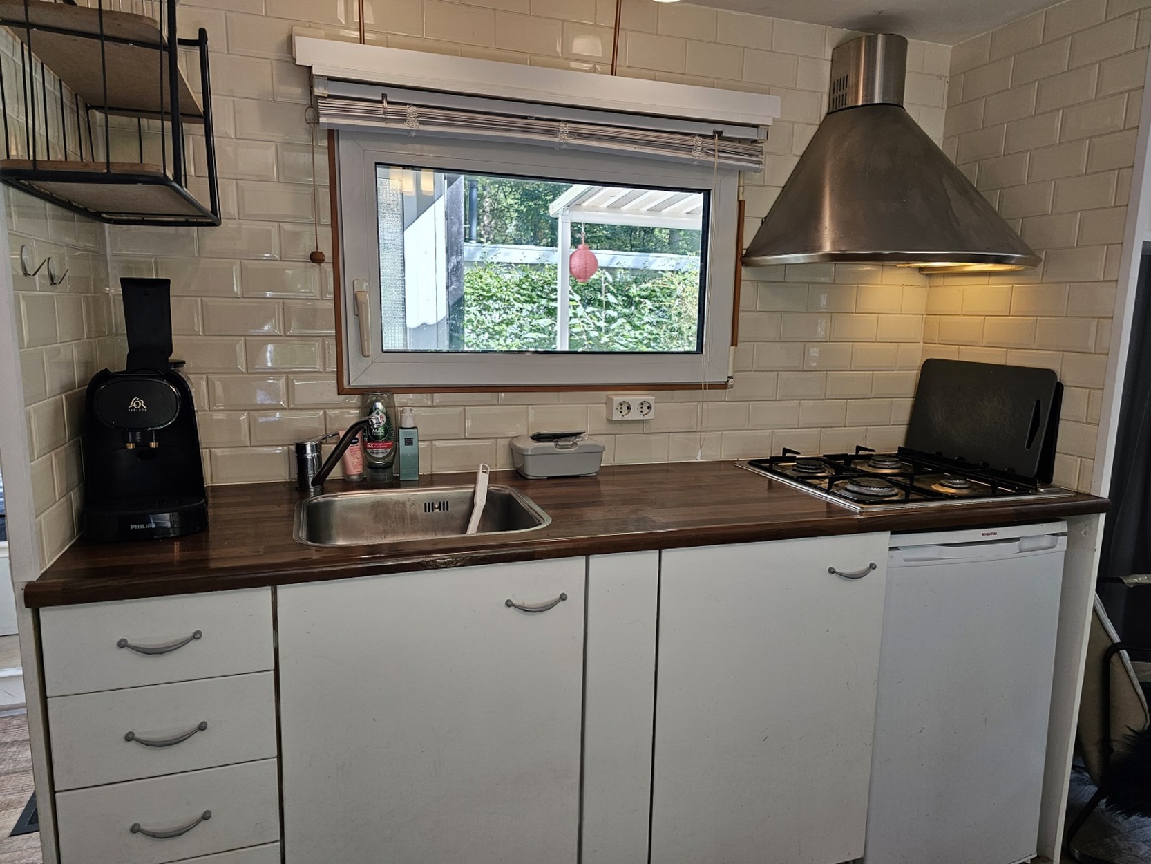 - Keuken met 4-pits gasstel en afzuigkap