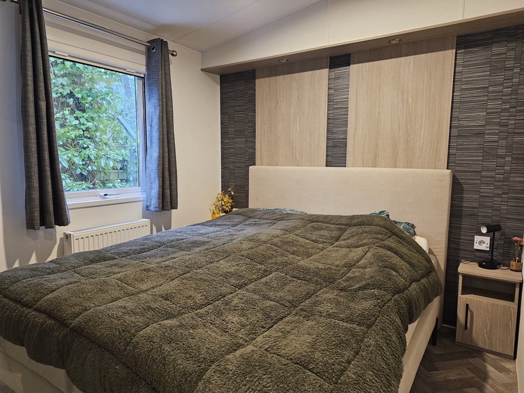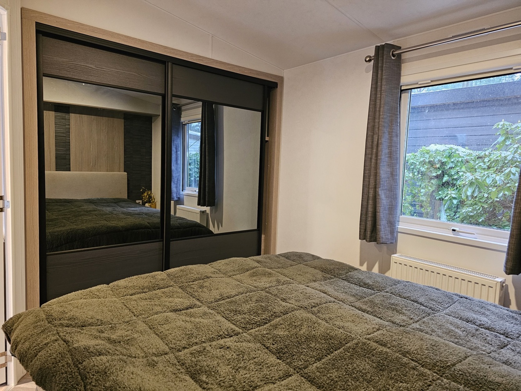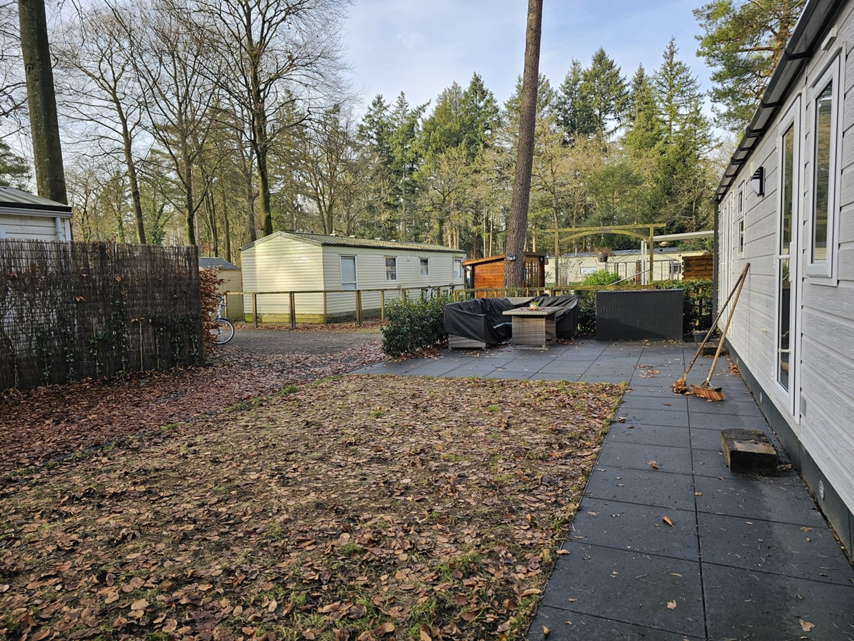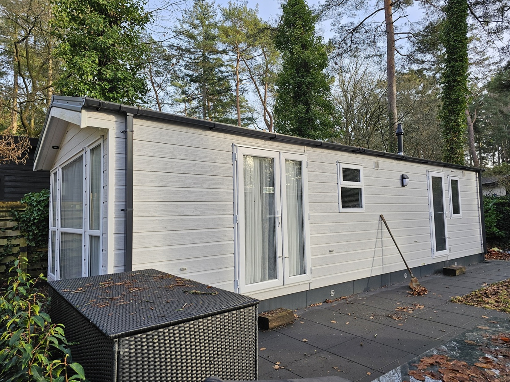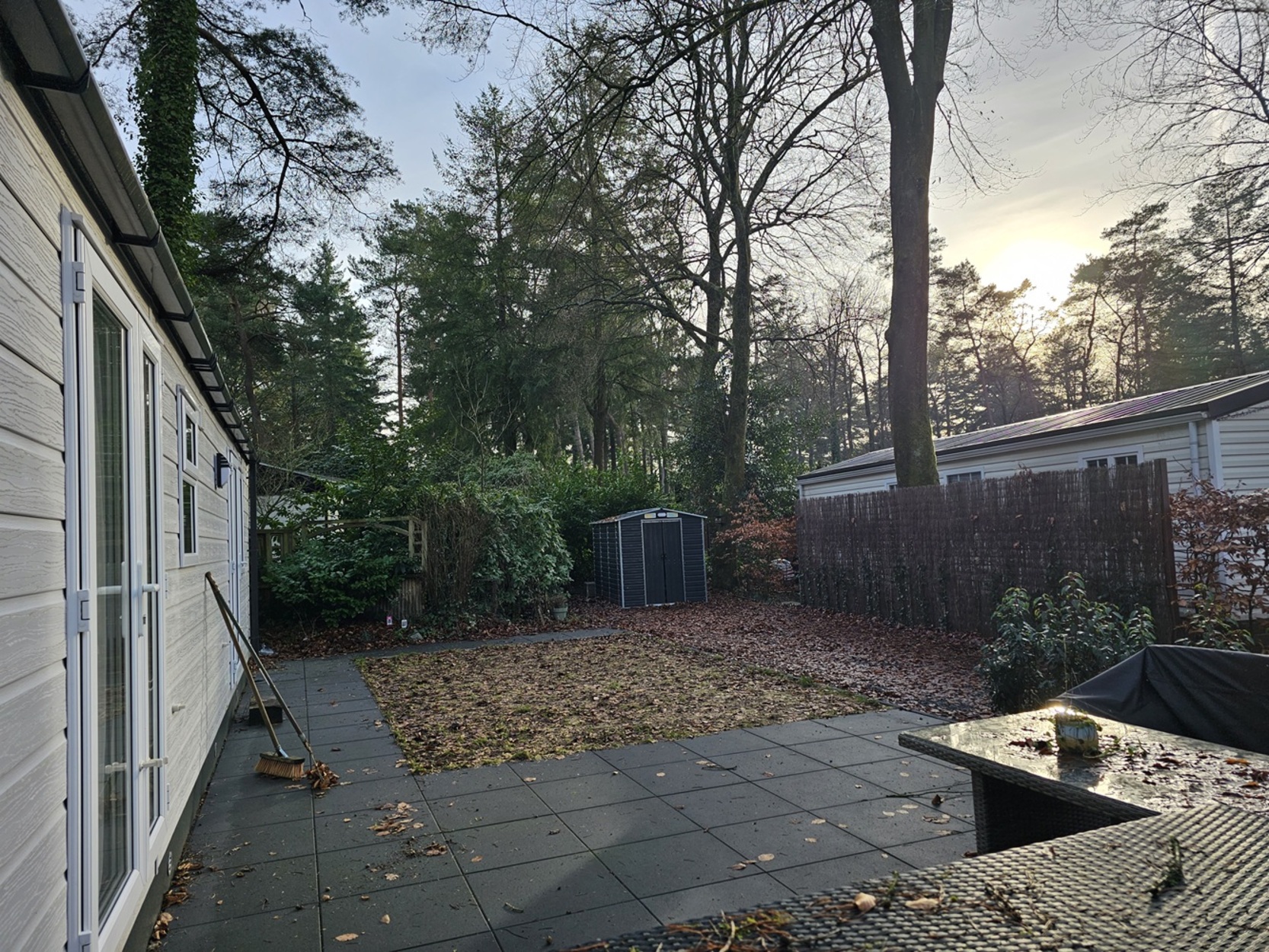 In bijna nieuwstaat 2024 chalet aan gezellig hofje!Gelegen aan een gezellig en doodlopend hofje staat dit in 2024 nieuw geplaatste chalet op een strak aangelegde plek. Een heerlijke plek in een bosrijke omgeving om de vakanties door te brengen. De tuin is ingericht met een ruime parkeerstrook, tegelterras en een schuurtje. Het chalet is voorzien van handige opties zoals o.a. een vaatwasser, horren, veel raampartijen voor veel lichtinval en een zeer complete inventaris (het grote boxspring bed is ter overname). In de slaapkamers zijn diverse kastjes aanwezig. De grote slaapkamer is voorzien van een ruime kastenwand met veel opbergruimte. Ben je benieuwd naar deze prachtige plek? Plan dan nu een bezichtiging!