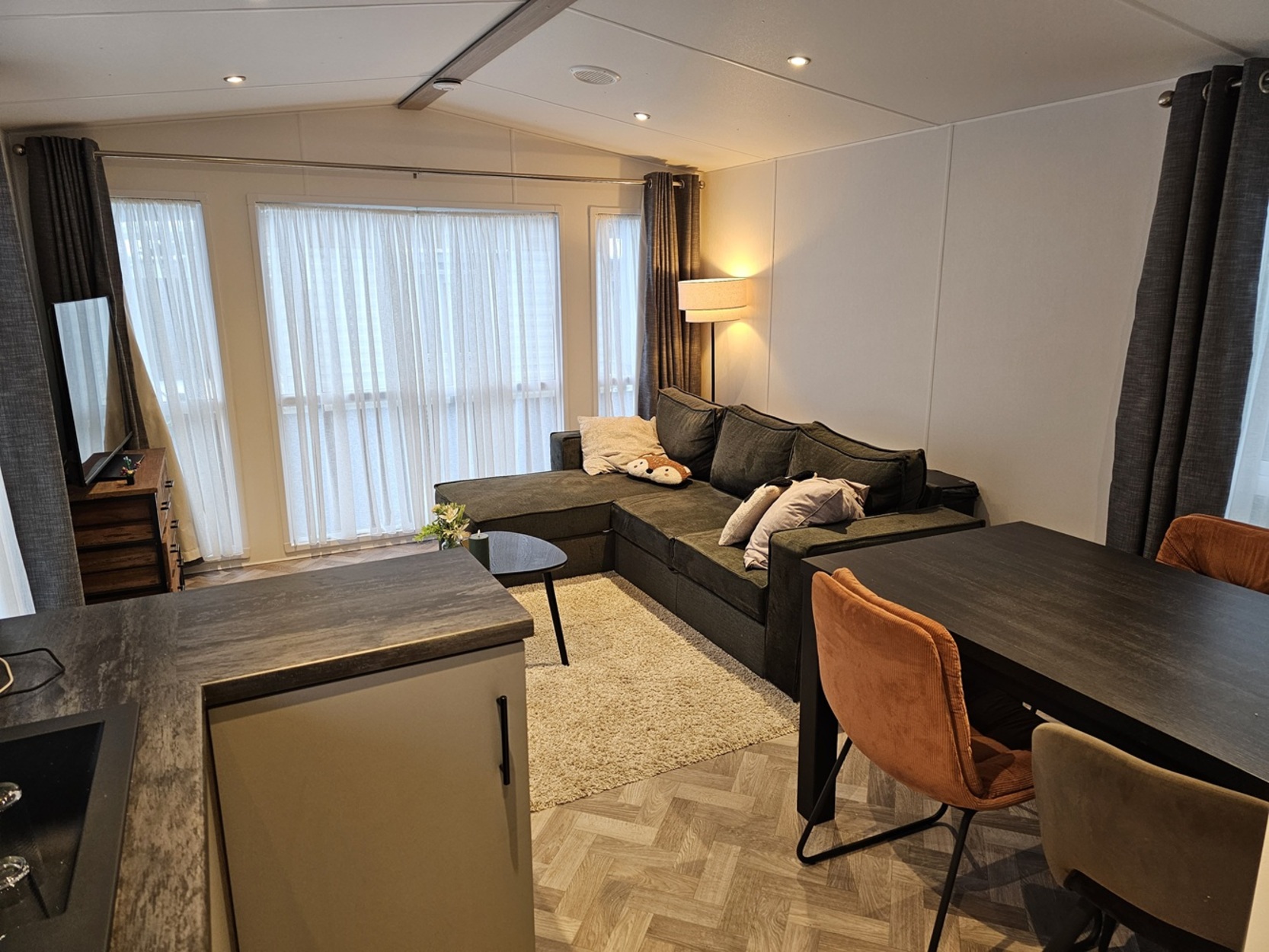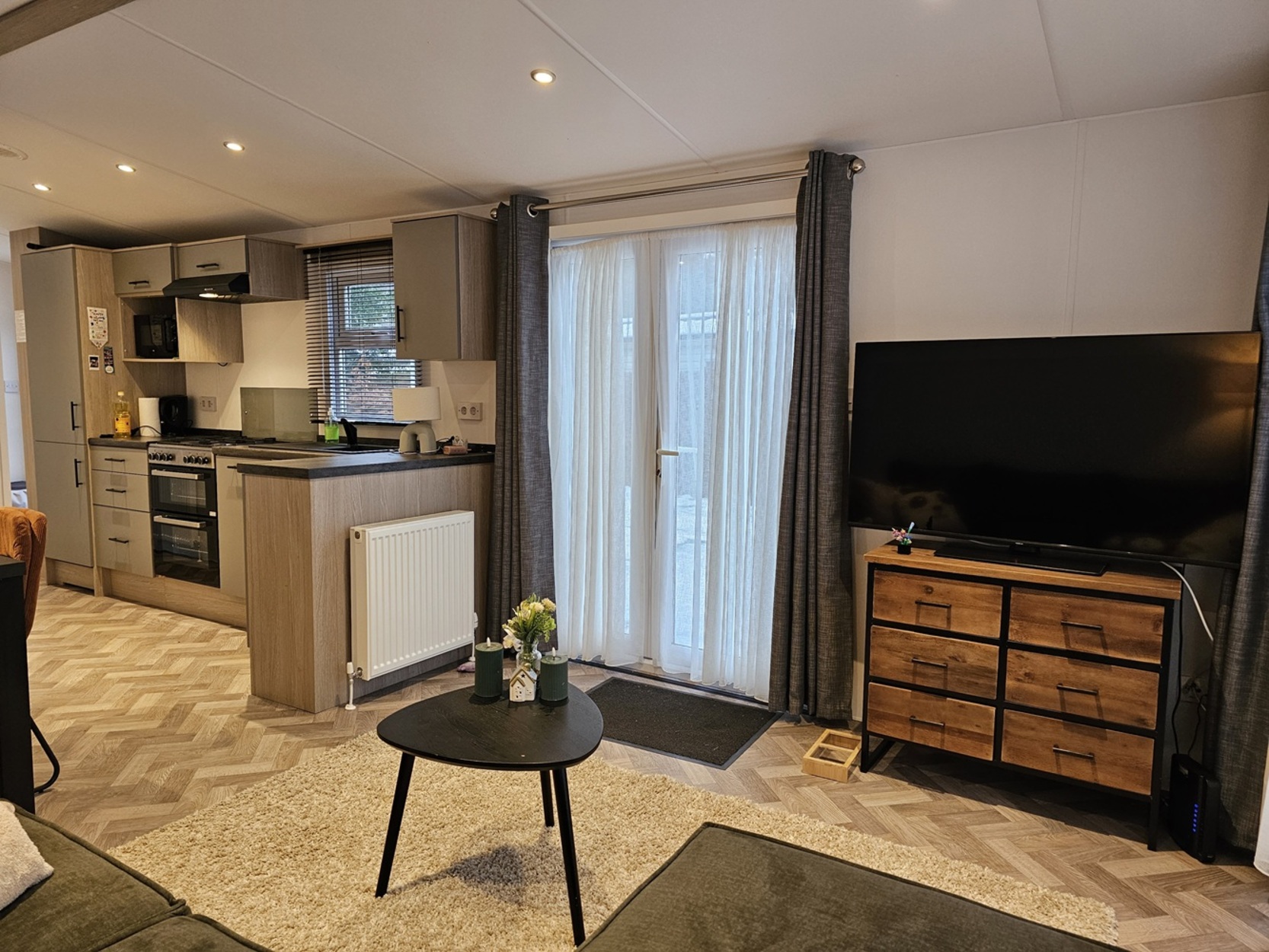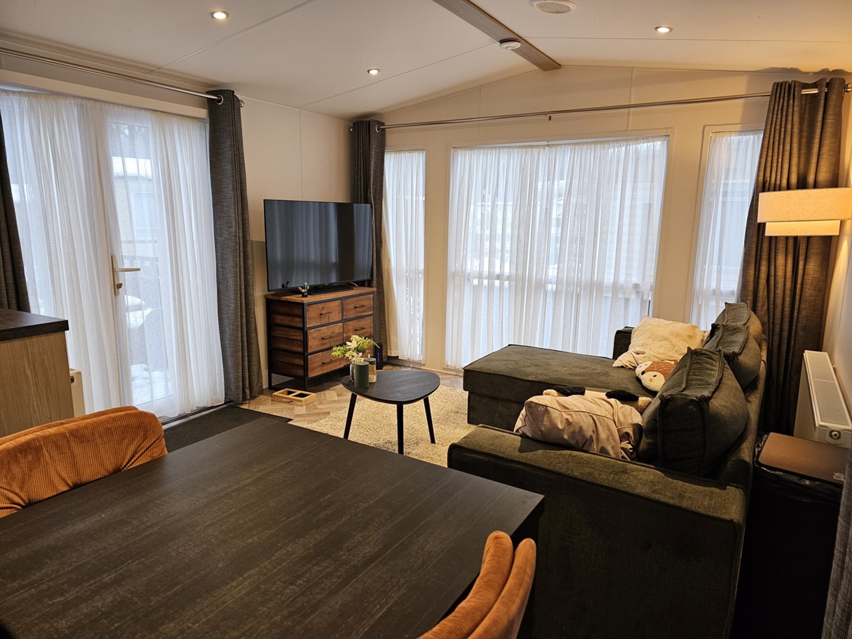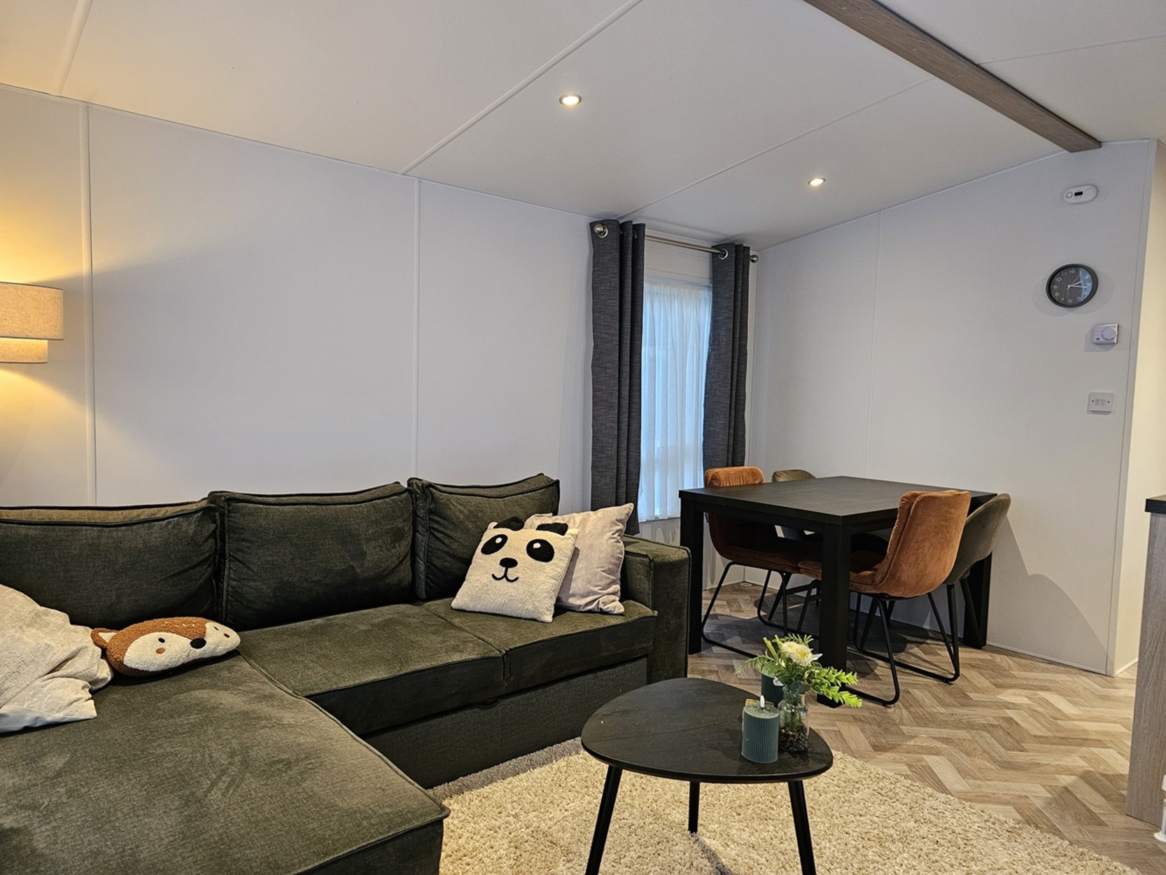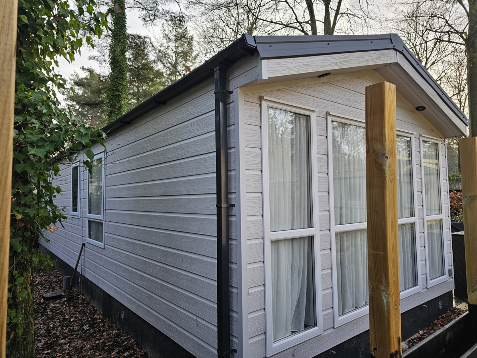 In bijna nieuwstaat 2024 chalet aan gezellig hofje!Gelegen aan een gezellig en doodlopend hofje staat dit in 2024 nieuw geplaatste chalet op een strak aangelegde plek. Een heerlijke plek in een bosrijke omgeving om de vakanties door te brengen. De tuin is ingericht met een ruime parkeerstrook, tegelterras en een schuurtje. Het chalet is voorzien van handige opties zoals o.a. een vaatwasser, horren, veel raampartijen voor veel lichtinval en een zeer complete inventaris (het grote boxspring bed is ter overname). In de slaapkamers zijn diverse kastjes aanwezig. De grote slaapkamer is voorzien van een ruime kastenwand met veel opbergruimte. Ben je benieuwd naar deze prachtige plek? Plan dan nu een bezichtiging!