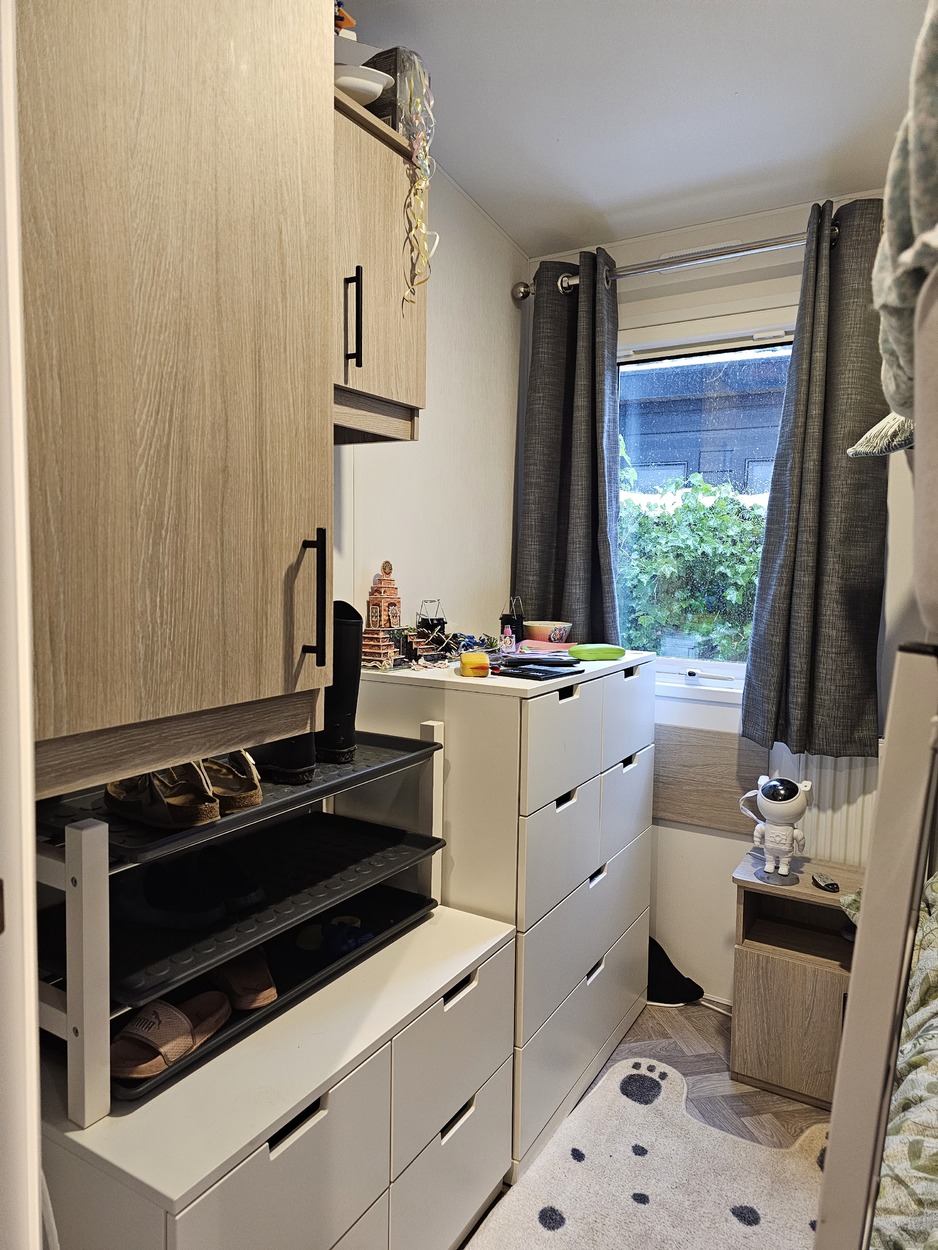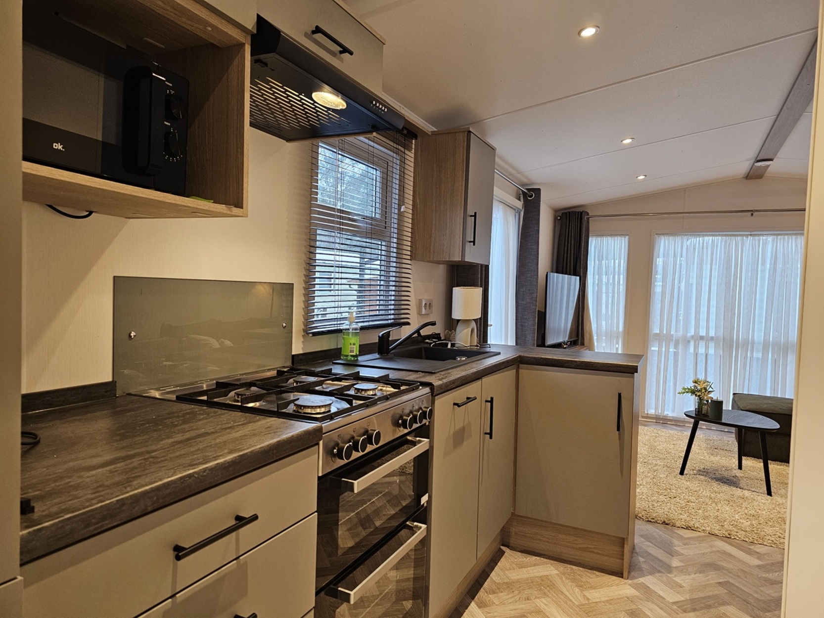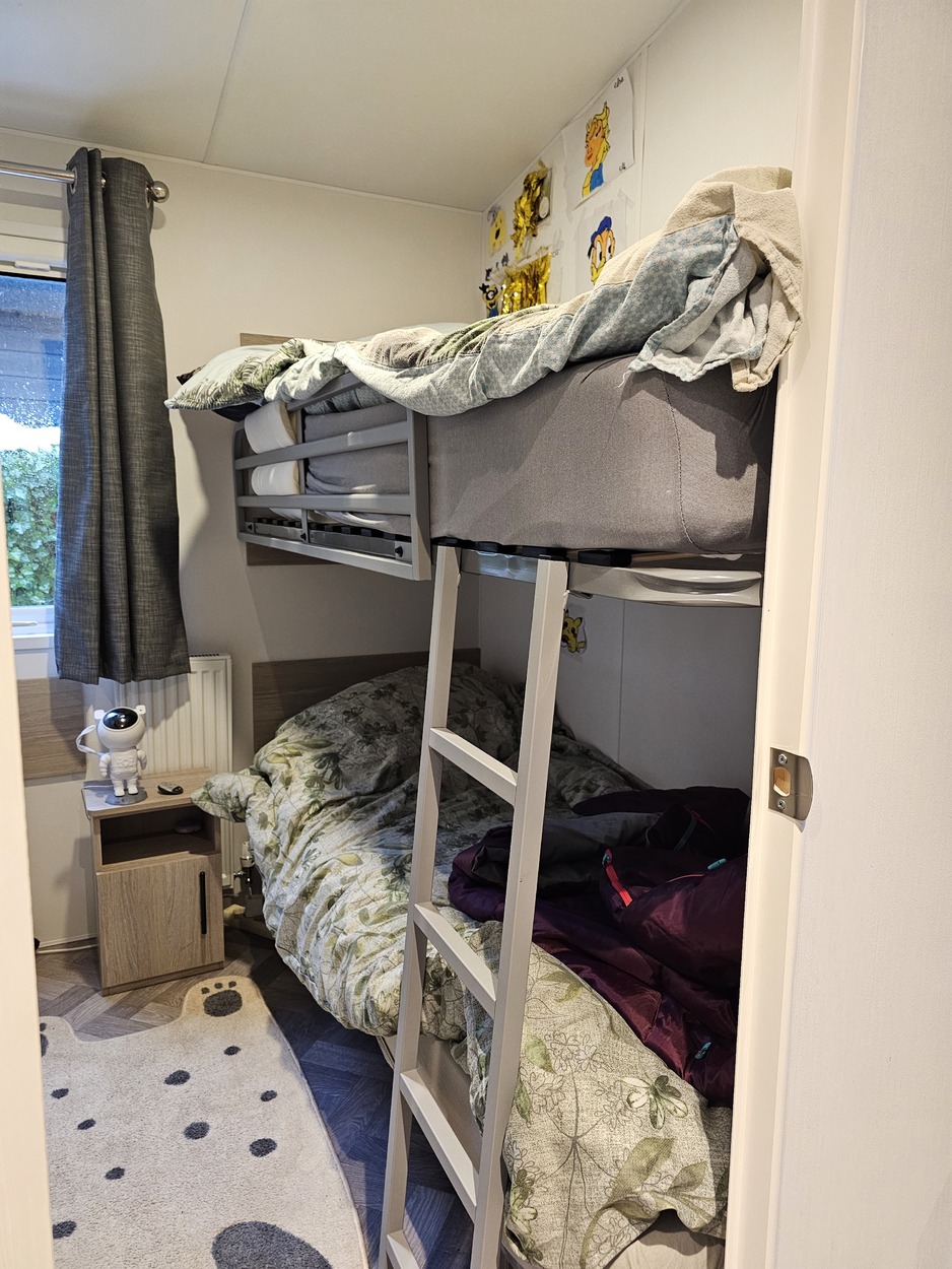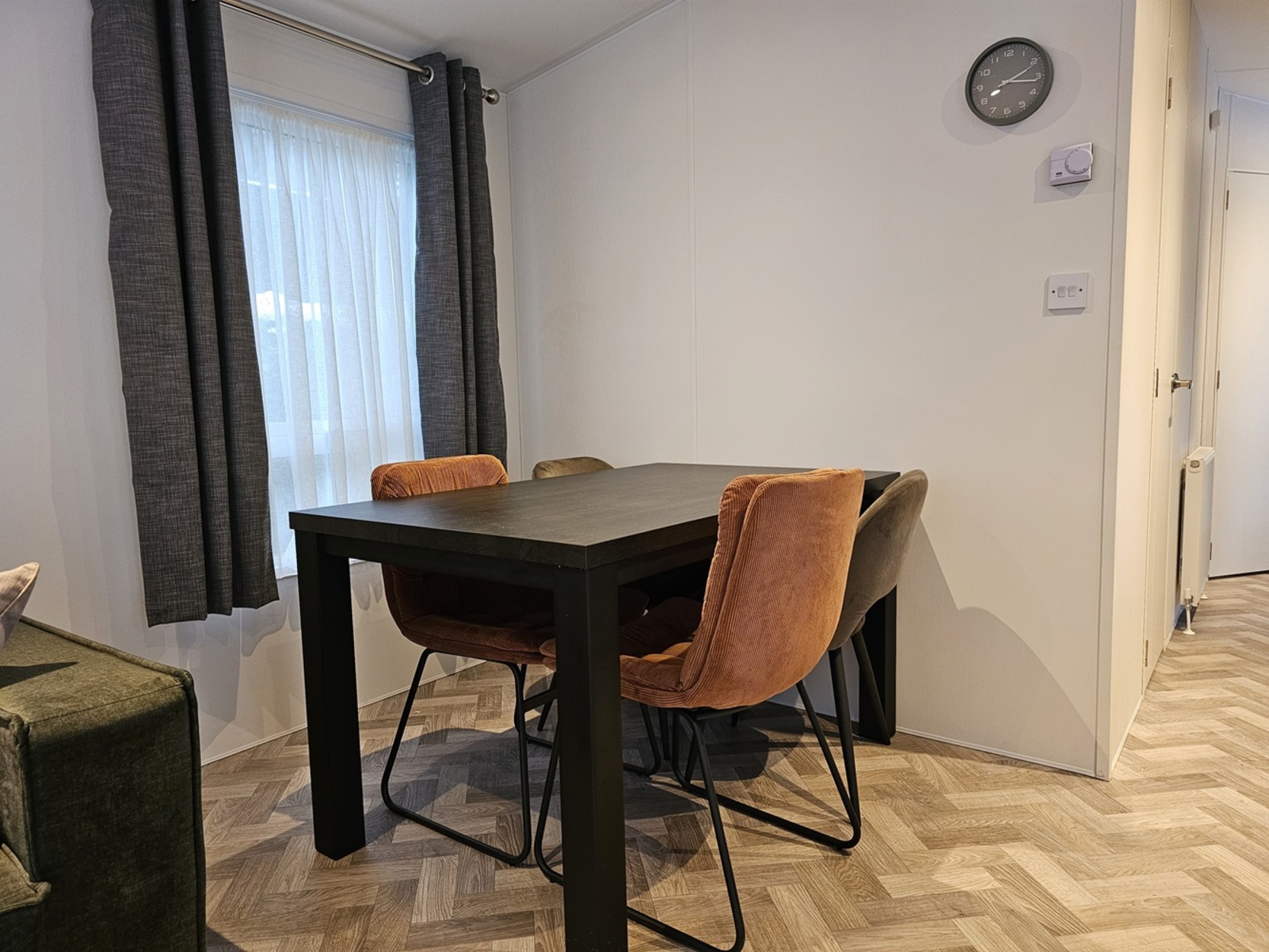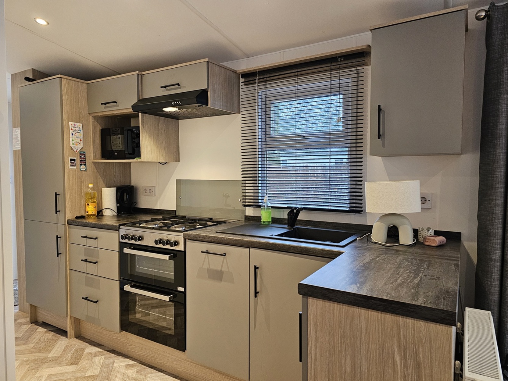 In bijna nieuwstaat 2024 chalet aan gezellig hofje!Gelegen aan een gezellig en doodlopend hofje staat dit in 2024 nieuw geplaatste chalet op een strak aangelegde plek. Een heerlijke plek in een bosrijke omgeving om de vakanties door te brengen. De tuin is ingericht met een ruime parkeerstrook, tegelterras en een schuurtje. Het chalet is voorzien van handige opties zoals o.a. een vaatwasser, horren, veel raampartijen voor veel lichtinval en een zeer complete inventaris (het grote boxspring bed is ter overname). In de slaapkamers zijn diverse kastjes aanwezig. De grote slaapkamer is voorzien van een ruime kastenwand met veel opbergruimte. Ben je benieuwd naar deze prachtige plek? Plan dan nu een bezichtiging!