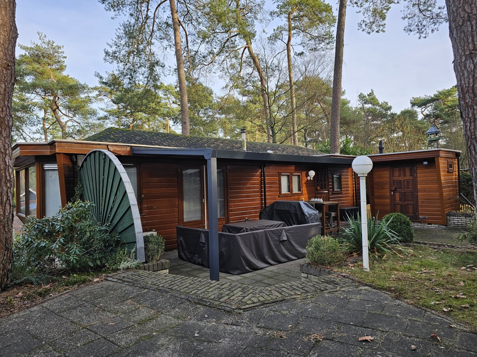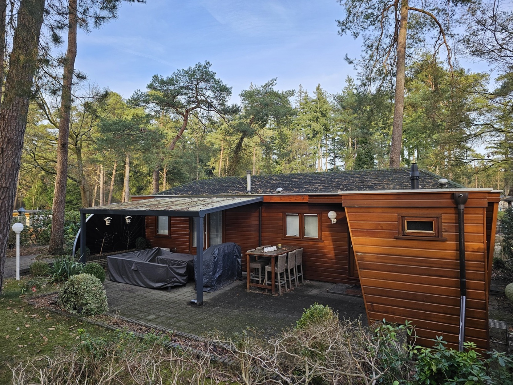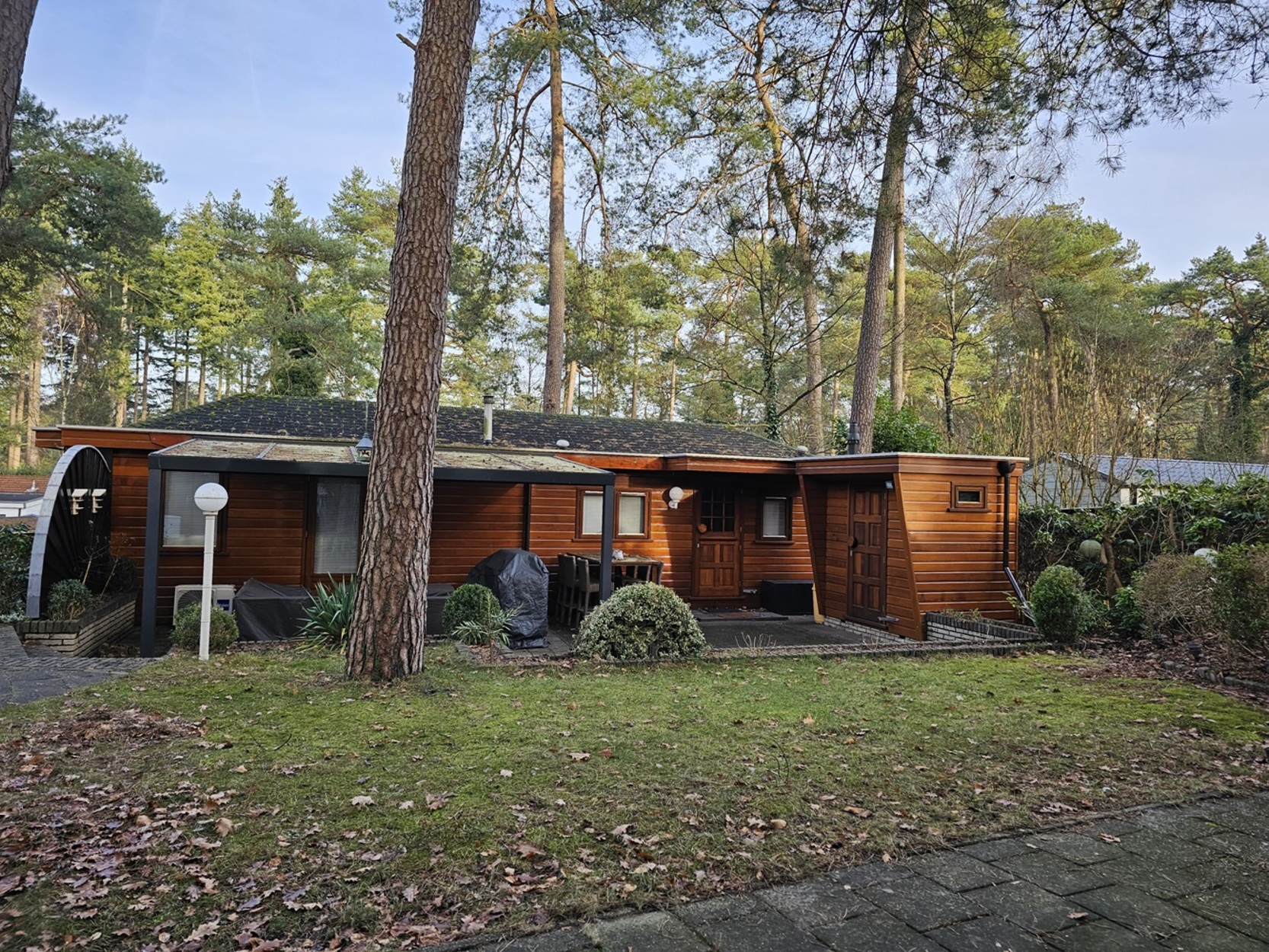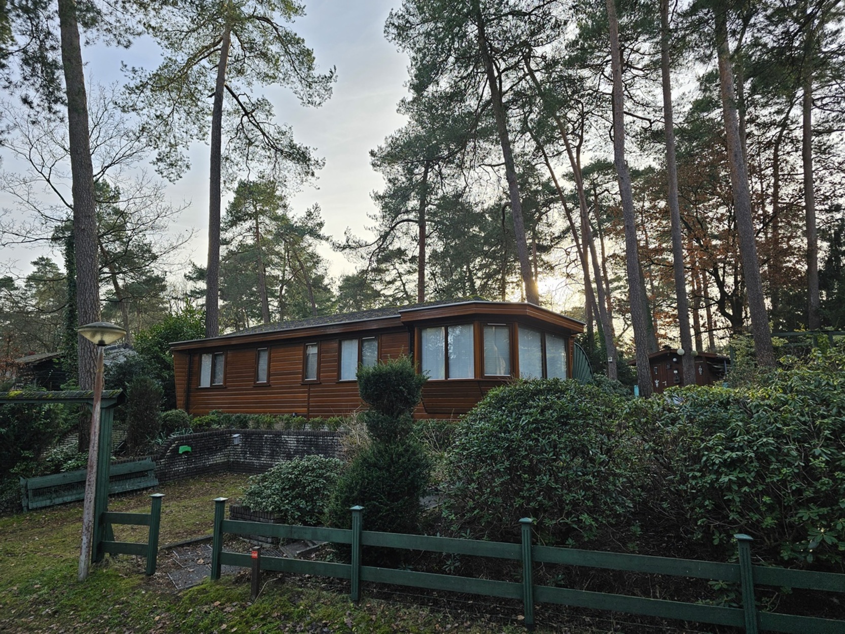 Prachtig gelegen houten chalet op royale privé locatie!Op een prachtig gelegen kavel met veel ruimte en privé staat dit schitterende chalet. De unieke erker zorgt voor een geweldig aanzicht en creëert een heerlijk ruim gevoel in de woonkamer en royaal uitzicht. Het chalet is voorzien van 2 slaapkamers waarbij de tweede kamer door middel van een handige uitschuifbare room devider kan worden opgedeeld in een extra (3e) slaapkamer. Een ruime keuken, een betegelde badkamer en een ruime woonkamer met openslaande tuindeuren. Zowel binnen als buiten geniet je van veel ruimte, want de prachtig aangelegde tuin bied daar alle mogelijkheid voor! Zoals onder andere een groot terras met overkapping. Op deze plek staat een mooi tuinhuisje welke voorzien is van elektra en water, en de voorzijde van de kavel is voorzien van ruime parkeerplekken. Zie jij jezelf hier al genieten? Plan dan snel een bezichtiging!