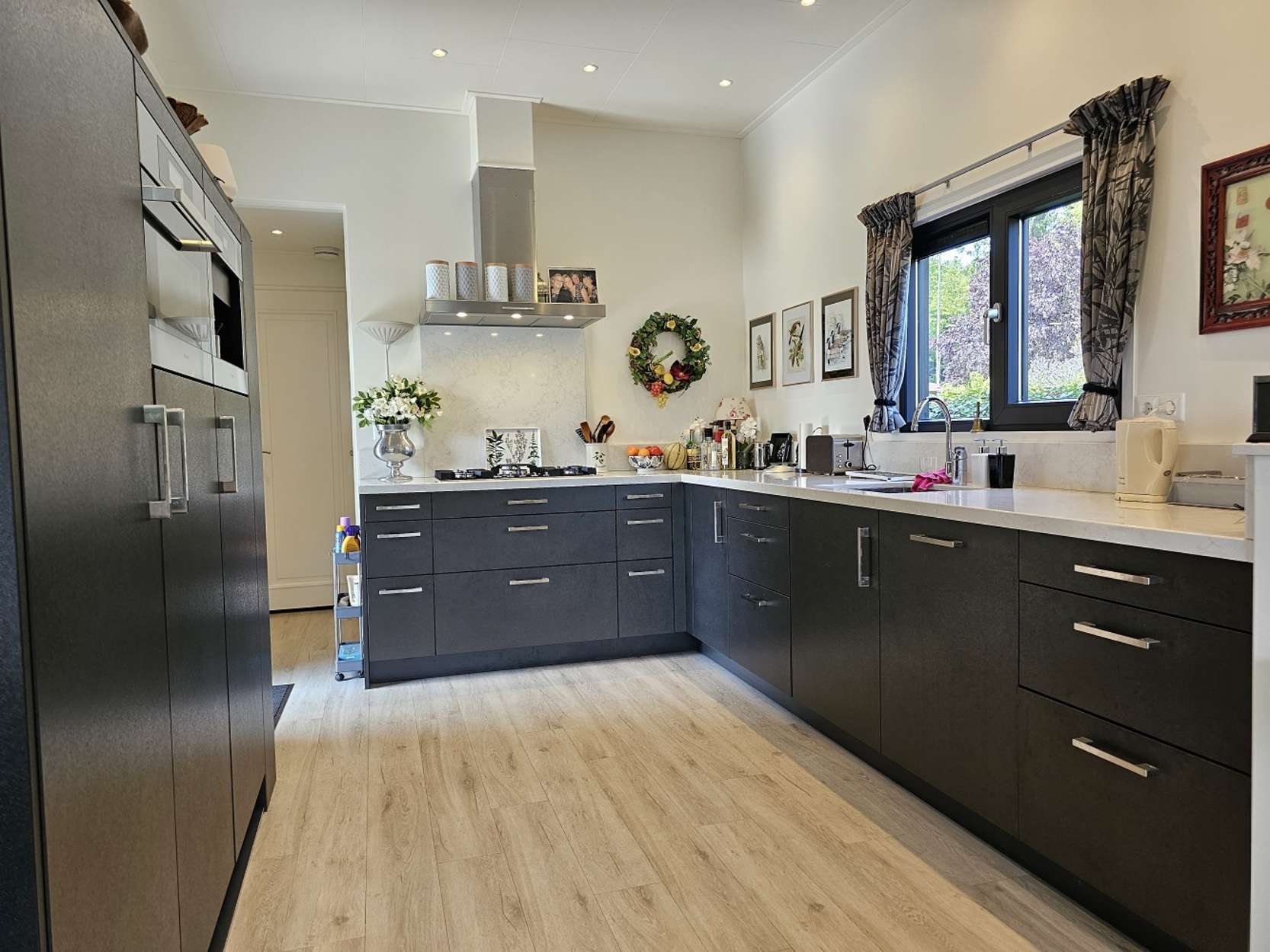 - Vaatwasser en grote koelkast, kookplaat met wok pit, afzuigkap, combimagnetron en koffieapparaat