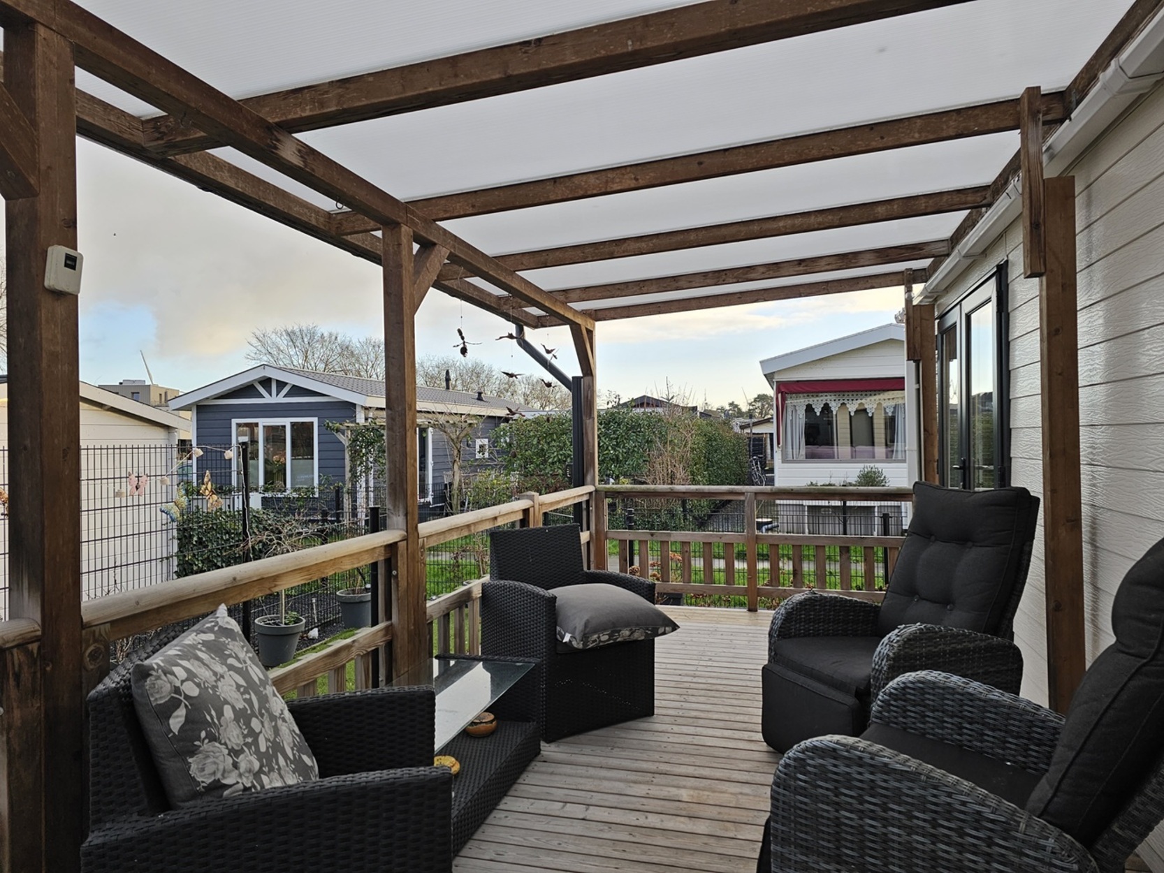 Keurig nette 2 Slk 2018 chalet gelegen aan voorzijde camping!Dit keurig nette chalet is gelegen aan een leuke plek aan de voorzijde van de camping. Een gezellig en goed bereikbaar hofje maakt dit tot een heerlijke rustplek voor een vakantie of weekendje weg. De tuin is ingericht met een tegelstraatje, kunstgras en een ruime houten vlonder met aan het chalet een overkapping om heerlijk knus te genieten. Het chalet is voorzien van 2 slaapkamers, centrale verwarming, airco, een vaatwasser en in de grote slaapkamers zelfs twee schitterende inloopkasten. Zie jij jezelf hier al genieten? Plan dan snel een bezichtiging!